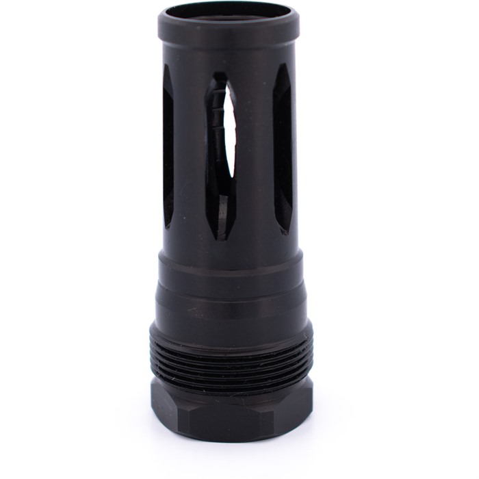 R2 FLASH HIDERS These fit Plan B type mounts. Always use an alignment rod to ensure that the entire system is set up correctly. Make sure all surfaces are cleaned and the muzzle device has been torqued and Rockset to the barrel. Use on a Q can voids your warranty, be warned. Torque the muzzle device to approximately 30 ft lbs. Make sure the muzzle device is square against the shoulder. When setting the silencer on the muzzle device, ensure that the threads and tapers are clean. Torque the suppressor to 10 ft lbs. Ensure alignment. Enjoy. The nitride finish does lead to a tighter seal, with that said, it is extremely important to torque and rockset your muzzle device to the barrel properly. FEATURES: 17-4 PH Atlas and Atlas XL compatible Plan B compatible Black Nitride finish (67 HRC Surface hardness) Shims not included, if you would like to specifically time this, shims will be required. Note: your barrel may require a shim if the manufacturer did not put a thread relief on it.