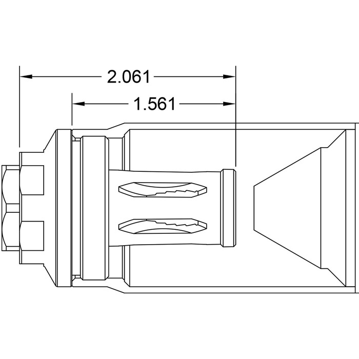 R2 FLASH HIDERS These fit Plan B type mounts. Always use an alignment rod to ensure that the entire system is set up correctly. Make sure all surfaces are cleaned and the muzzle device has been torqued and Rockset to the barrel. Use on a Q can voids your warranty, be warned. Torque the muzzle device to approximately 30 ft lbs. Make sure the muzzle device is square against the shoulder. When setting the silencer on the muzzle device, ensure that the threads and tapers are clean. Torque the suppressor to 10 ft lbs. Ensure alignment. Enjoy. The nitride finish does lead to a tighter seal, with that said, it is extremely important to torque and rockset your muzzle device to the barrel properly. FEATURES: 17-4 PH Atlas and Atlas XL compatible Plan B compatible Black Nitride finish (67 HRC Surface hardness) Shims not included, if you would like to specifically time this, shims will be required. Note: your barrel may require a shim if the manufacturer did not put a thread relief on it.