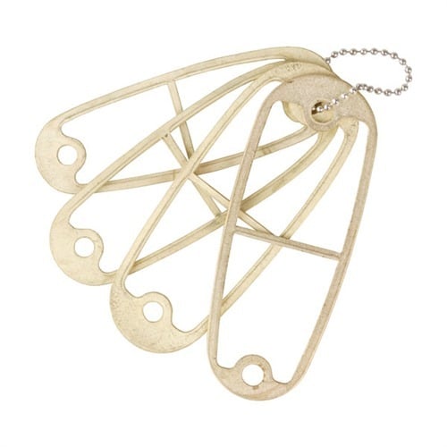 034337024507 Messinkiset mallit näyttävät, missä teräksiset vahvistuslevyt sijaitsevat kaikissa suljetuissa Pachmayr -iskupatjoissa, jotta et vahingossa leikkaa niitä muotoillessasi iskupatjaa. Aseta malli uuden patjan taakse ja tarkista näkyvästi jäljellä oleva välys muotoilun aikana. Neljän mallin setti toimii pienille, keskikokoisille, suurille ja suurille magnum -iskupatjoille.Jälkitilaus, toimitusaika n. 4-12 viikkoa USA:n varastosta.
