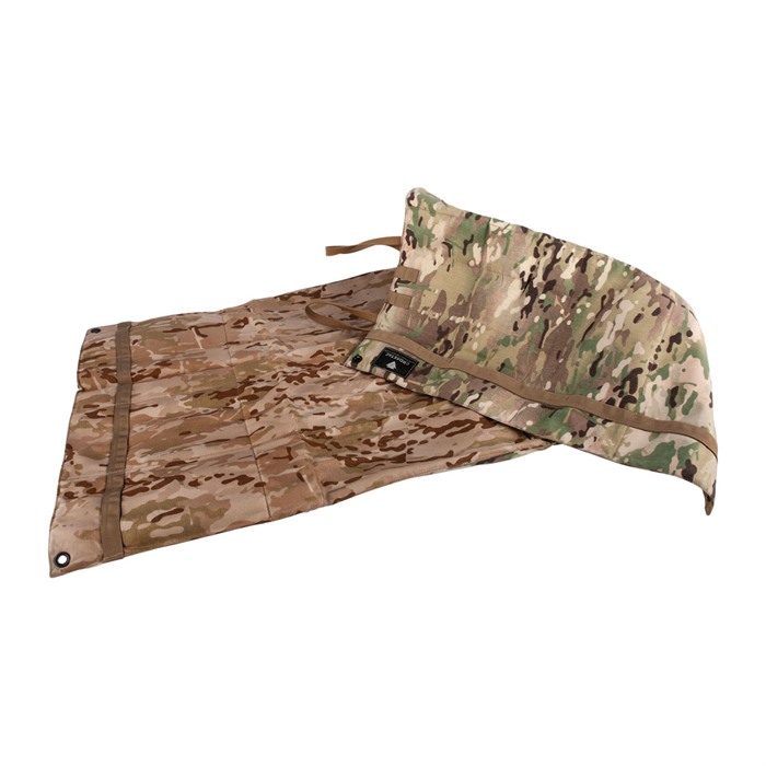 RECON SHOOTING MAT Shooting off a mat is nice, but it's impractical for most field shooters and hunters, since many shooting mats are too bulky and cumbersome to actually carry into any real scenario. However, Crosstac is addressing the issue with the design of its Recon Shooting Mats, which are built to be lightweight and compact enough for shooters to carry with them wherever they go. Each Crosstac Recon Shooting Mat features a sewn-in bipod-support rail at the front edge of the mat, which means that shooters can load their bipod without worrying about it slipping off the edge of the mat. The mat itself is made from 500 Denier cordura fabric, which is tough enough to survive rough field conditions. The mat weighs only 1.2 pounds and measures 14 inches by 3 inches when rolled up, allowing for easy carry. In a pinch, the Crosstac Recon Shooting Mat can even be deployed as an improvised shelter, thanks to the included grommets that allow the mat to be pinned down or tied out. The multi-cam finish enables it to be used as instantaneous camouflage in a pinch, if needed.