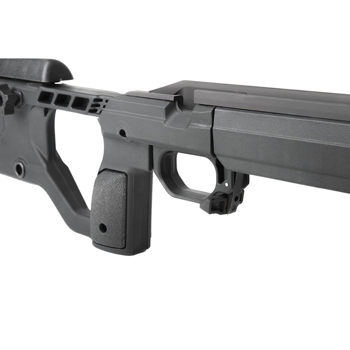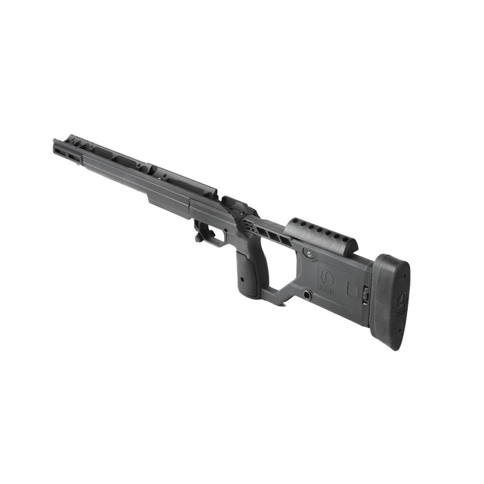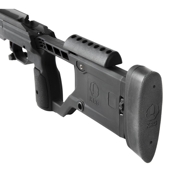 X-Ray Chassis (Generation 4) Unprecedented value...This is what the X-Ray chassis provides to you. When you pick up the X-Ray, it will feel nice and light compared to other chassis. You'll have nearly identical ergonomics to the Whiskey-3 with only a little more time involved in adjusting the different aspects like the length of pull. Furthermore, you'll have all the standard benefits of a chassis like the use of AICS magazines, a variety of mounting points for slings, barrier stops, etc., and aluminum block bedding for the action while not having to sell off a kidney to pay the price of admission. To accomplish Kinetic Research Group’s design intent, we kept the features that everyone wants and needs and eliminated those that weren't necessary. Then they utilized efficient manufacturing processes to keep production costs down and in turn keep the price to the shooter down. The end result is a hybrid aluminum and polymer chassis that we think you'll love. Kinetic Research Group is proud to present the X-Ray chassis, the result of years of careful design, thought, refinement, and hard work. The change is a new one piece backend, which comes standard with tool-less buttpad height and cant adjustment, as well as a ambidextrous cheekpiece thumbscrew. All KRG’s chassis take AICS magazines with nothing extra needed, the magazine is not included. Note: Actions with trigger hangers will not work without mods to the chassis, hanger, or both.