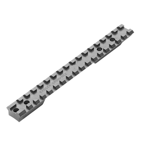 Badger Ordnance’s Remington Long Action Scope Rail is a heavy-duty steel base with built-in forward angle bias so you can take those ultra-long-range shots without exceeding the elevation adjustment of your scope. The Badger Ordnance Remington Long Action Scope Rail has a MIL-STD 1913 Picatinny slot pattern for maximum compatibility with the many Picatinny tactical scope rings currently available. Bore height dimension is .31" The Badger Ordnance Remington Long Action Scope Rail has an integral recoil lug that ensures this base won’t move, even when shooting the hardest-kicking cartridges.
