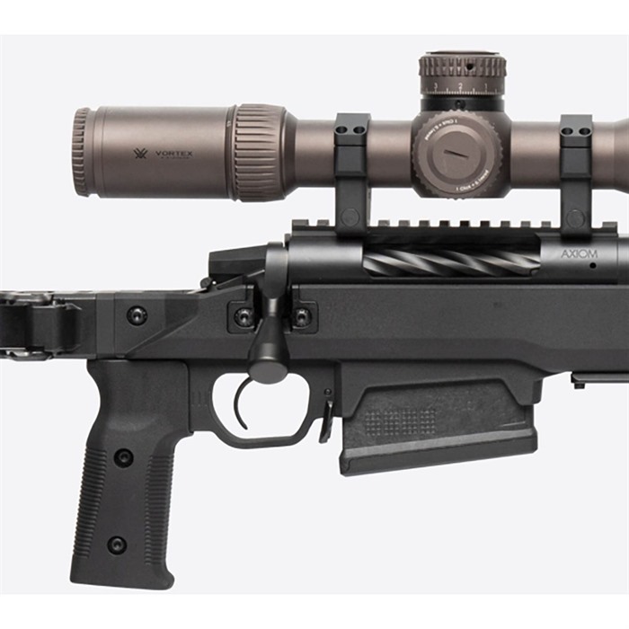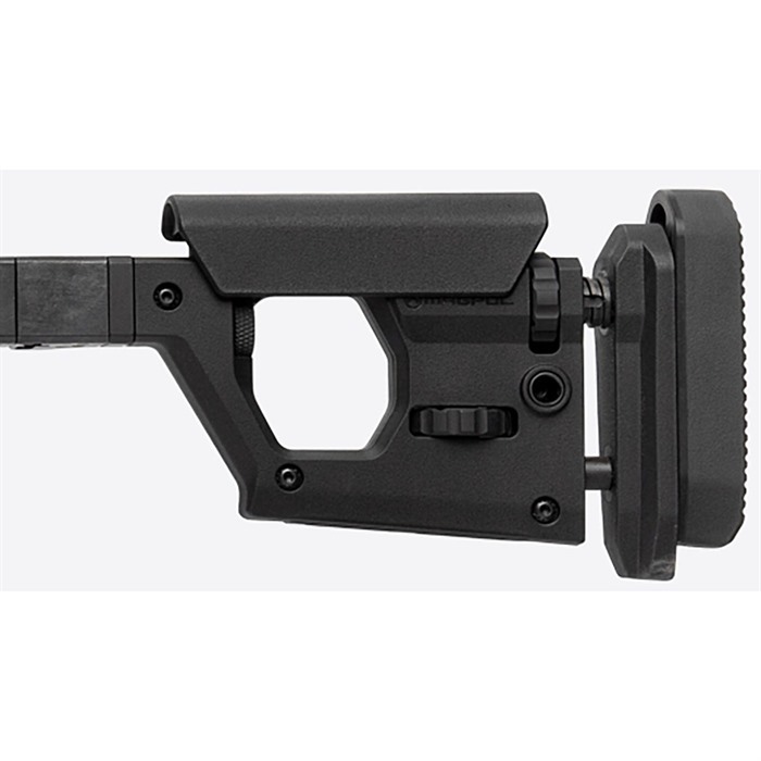 The Magpul Pro 700L Rifle Chassis is an uncompromising, full featured precision rifle chassis for long action Remington 700 and Remington 700-footprint rifles. The Pro 700L combines innovative engineering, precision machining, Mil-Spec quality finishes, and an extensive list of purposeful design features with complete adjustability to provide demanding end users with the most comprehensive available precision rifle platform solution for true out of the box performance. Based on a full billet aluminum skeleton and clad in Magpul polymer for environmental comfort, noise mitigation, and ergonomics, the Pro 700L is also fully ambidextrous. Capable of fitting both right and left-handed actions with the simple swap of a bolt-cutout plate, and with a reversible cheek riser and reversible hinge on the folding version, “lefties” haven’t been “left out.” MAG1002 PRO 700L - FOLDING STOCK IS SUPPLIED WITH THE PRO FHA - FOLDING HINGE ADAPTER (MAG999) INSTALLED MAG1003 PRO 700L - FIXED STOCK IS SUPPLIED WITH THE PRO FSA - FIXED STOCK ADAPTER (MAG998) INSTALLED Type III hard anodized machined 6061-T6 billet aluminum V-bedding block, body, adjustment knobs and forend with high strength injection molded polymer body covers optimally placed for comfort and aesthetics Ambidextrous bedding block can be changed by swapping the QD sling swivel plate and bolt retainer inserts for left or right hand actions using a 1/8” hex wrench A Magpul Pro NVM – Night Vision Mount clip-on mounting rail solution is available Overall LOP adjustment range is 13.25” – 15.125” Butt-pad height can be adjusted up 1.33” and down .90” and is adjustable left or right for a total of 5 degrees Comb height adjustment has a 1" range with a secondary locking knob to eliminate movement in the cheek riser Cheek riser features a 3-position fore/aft adjustment of +.375", 0" and -.375" which can also be changed for left or right side usage using only a common hex wrench Injection molded polymer grip with 5 degree forward edge sweep and enlarged palm swell with 7 degree aft edge sweep for enhanced user comfort combined with a .75" fore/aft adjustment range using a common hex wrench. Additional grip option included with a more aggressive sweep and enlarged palm swell for the shooter that is more inclined to a less vertical grip interface (8 degree forward / 20 degree aft edge sweep) Durable cast steel rotation limited QD sling swivel mounts with Melonite finish fits up to 1.5” push button swivels M-LOK slots for accessory mounting on the forend (left-6/right-6/bottom-7) and the stock (bottom-2) Integrated AICS pattern magazine well of reinforced polymer construction optimized for PMAG® 5 AC™ L, Standard and PMAG® 5 AC™ L, Magnum - AICS Long Action magazines as well as most other AICS pattern long action magazines Large trigger guard allows for use with gloves and accepts most factory and aftermarket curved or flat triggers Low-profile, anti-snag ambidextrous magazine release is made of Melonite treated steel for wear and corrosion resistance Made in the U.S.A.