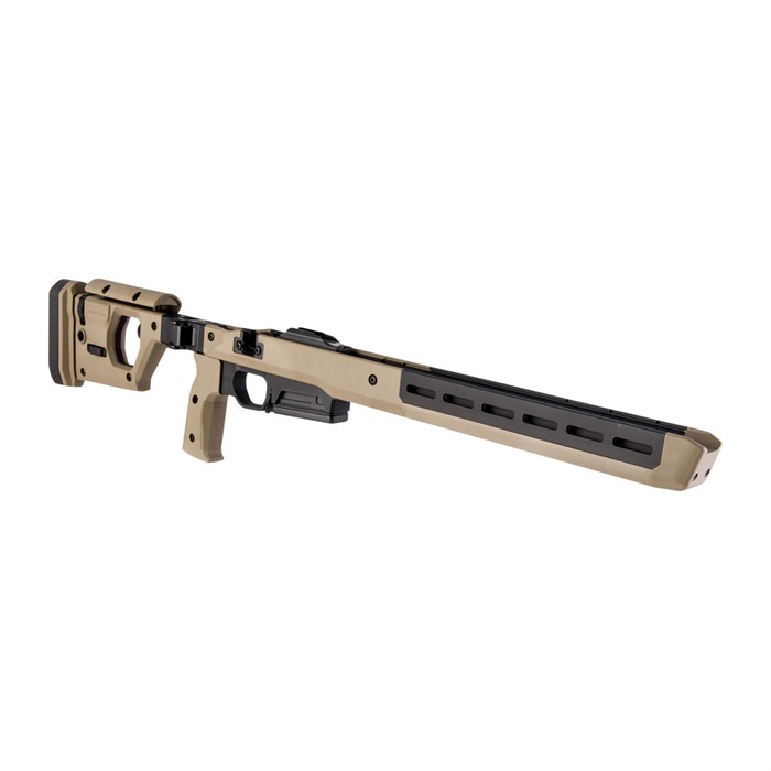 - Magpul Remington 700 Pro Chassis sopii MTU-tyypin piipun muotoon ja on saatavana mustana, flat dark earth -värisenä ja od green -värisenä.