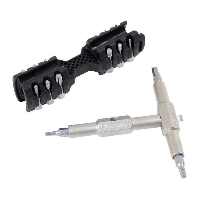 Fix It Sticksin vaihdettava versio ammuntaan ja metsästykseen tarjoaa vertaansa vailla olevaa kannettavuutta, toimivuutta ja monipuolisuutta. Kaksi Fix It Sticks -työkalua (jotka yhdistyvät muodostaen T-kahvan) ja 16 bittiä pidetään muotoillussa pidikkeessä, joka mahdollistaa helpon kuljetuksen ja säilytyksen.