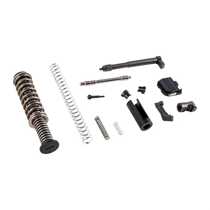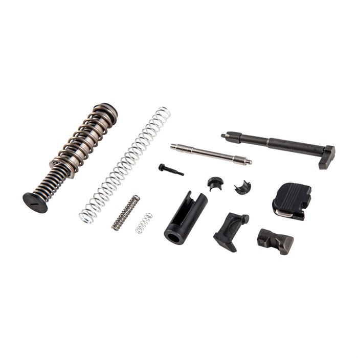 Contains all the parts you need to complete the innards of an aftermarket slide or refurbish a factory slide to like-new standards. All the parts in our Glock 43/43x/48 Slide Parts Kit are aftermarket parts made to the correct dimensions for proper fit, finish, and function in a factory spec slide. The extractor and firing pin are made from cast 17-4 SS. The extractor depressor plunger and firing pin safety are machined from bar stock. Kit Includes: Extractor Extractor Depressor Plunger Extractor Depressor Plunger Spring Spring -Loaded Bearing Slide Cover Plate Firing Pin Spacer Sleeve Firing Pin Spring Spring Cups Firing Pin Safety Firing Pin Safety Spring Guide Rod and Recoil Spring Assembly