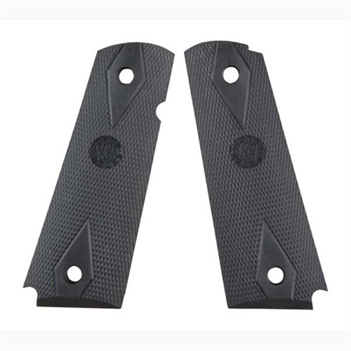 Hand-filling grips help absorb recoil by spreading the shock over a wider area of the hand. Finger groove models for semi-autos tighten the grip upward, into the triggerguard for better recoil control. All wood grips are cut from imported, select grades of hardwood. Molded rubber grips cushion recoil. Non-slip, pebble finish. 1911 Auto checkered grips are Double Diamond pattern.