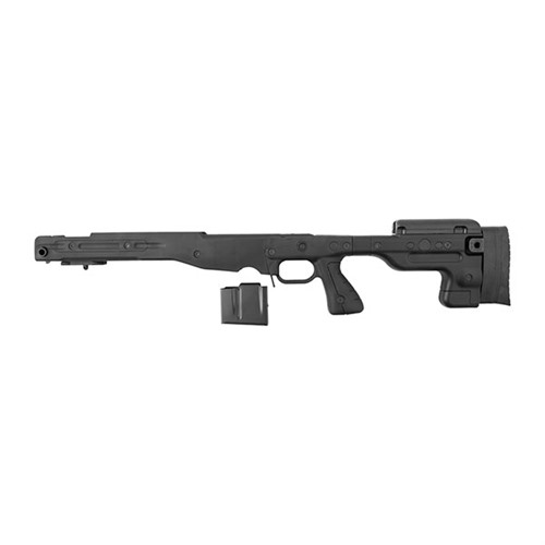 The AT chassis from Accuracy International is a polymer and alloy chassis (not merely a stock), which provides the rigidity, strength and durability necessary to provide a stable, rugged platform for a barreled action in all weather and any terrain. Adjustable length of pull using 10mm and 20mm spacers. Lateral and height adjustable cheek piece. Six flush cup sling points for quick sling positioning. AT folding stock available using AI’s battle proven hinge system. AX chassis style pistol grip. AICS 5 round magazine included and optional 10 round magazines available. KeySlot™ accessory mounting system on the 6:00 O’clock forend surface. Chassis is NOT supplied with M5x12mm screws for lowering cheekpiece beyond factory setting. These screws need to be purchased separately if wishing to lower the cheekpiece