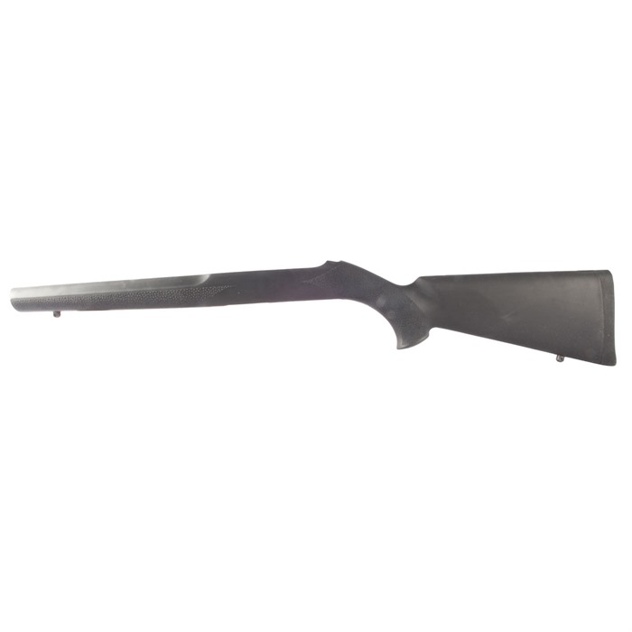 Cushioned Rubber Or Nylon Outer Skin Molded Over A Fiberglass Shell Cushioned rubber or nylon outer skin provides non-slip, shooting comfort; internal fiberglass body gives solid support, is lightweight and easy to carry. Fully-inletted for a drop-in fit; models available to fit factory standard barrels (S/B). Straight comb; wide, varmint-style forend with finger grooves, cobblestone finish on grip and forend; dual palm swells and recurve pistol grip make this stock as comfortable to shoot as it is practical. Includes rubber recoil pad, and front and rear sling studs.