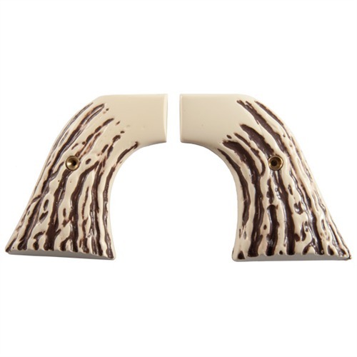 REPRODUCTION EXOTIC REVOLVER GRIPS Elegant-looking reproductions of grips for single-action revolvers look and feel like the hard-wearing stag antlers, jigged bone, or ivory used to customize original Old West sixguns. Produced by the same proprietary resin molding process N.C. Ordnance uses on all its reproduction grips for a solid feel and attractive finish. FEATURES S150 is a New Vaquero or a 50th Anniversary Blackhawk. They do not fit Ruger Vaquero XR3-Red, Early Blackhawks or New Model Blackhawks. J50 New Model Blackhawk is an XR3-Red frame. These grips also fit the XR3-Red Vaquero & the New Model Single Six, but not the New Vaquero or early Ruger Single Sixes. C130 Uberti Old Model P 1873 Grips - Also Fits New Sheriff, 7th Cav & Artillery & New Model Uberti Cattleman. Does NOT Fit Old Model Uberti Cattleman or Uberti Cattleman Hombre. Does Not Fit Cimarron & Taylor Firearms.