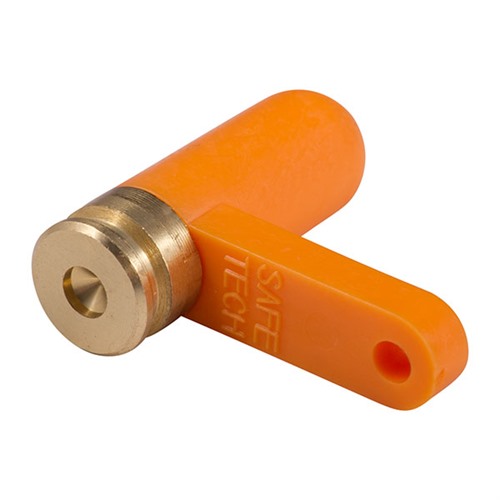 Bright, international orange tab gives clear indication of weapon condition. Provides the user, range safety officer and bystander alike with a visual and physical method of determining that a firearm is safe. Machined, brass case head lets you rapidly work the action and eject the Saf-T-Round. Molded from heat-resistant nylon polymer to provide lasting durability; won't deform after repeated use.