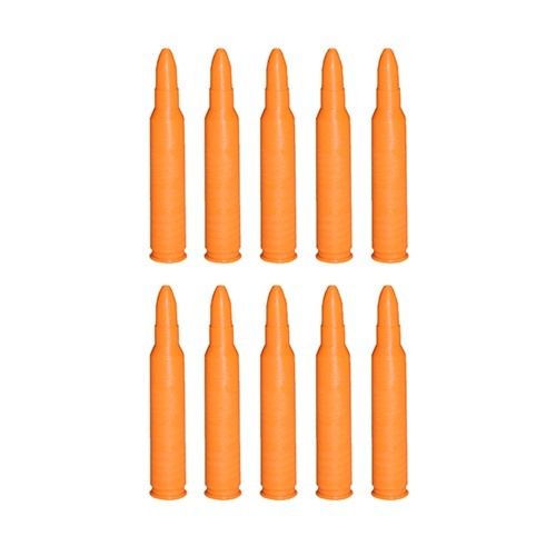 SAF-T-TRAINERS DUMMY ROUNDS, 223 REMINGTON ORANGE DUMMY ROUNDS 10/PACK ovat täydellinen valinta koulutusharjoituksiin. Näiden kirkkaasti värjättyjen muovipatruunoiden erilainen tuntuma varmistaa, ettei niitä sekoiteta oikeisiin patruunoihin.