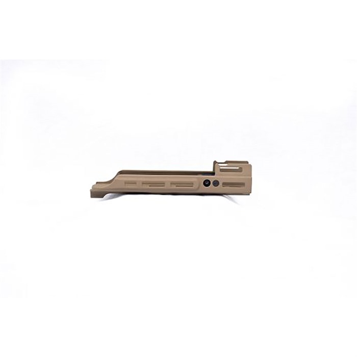 SCAR MREX MARK II M-LOK HANDGUARDS Though the platform has been popularized through its use with special-operations groups, the FN SCAR 17 hasn't received the accessory-attachment support that other military rifle platforms have. However, KDG is changing that with the SCAR MREX MKII Rail System. Based on the company's original MREX rail system, this attachment system provides a bunch of M-LOK attachment slots for bolting on your must-have accessories. Each KDG SCAR MREX MKII Rail System can be had in three different lengths: 2.2 inches and 6.5 inches. Each system is machined from 6061-T6 aluminum and features M-LOK modular slots along the entire length of the extension. A Drop M-LOK mounting point at the 12 o'clock position allows shooters to add on lights and lasers. The MKII design also incorporates the step-down design in front of the folding sight that shooters have asked for, but this design does not include the Picatinny rail forward of the front sight. NOTE: DOES NOT INCLUDE PICATINNY RAIL FORWARD OF THE FRONT SIGHT. Features Material: 6061-T6 Aluminum Black Anodize or FDE Cerakote Drop M-Lok 12 o’clock position for mounting of laser and light devices 100% Made in the USA Maintains zero for laser/light devices