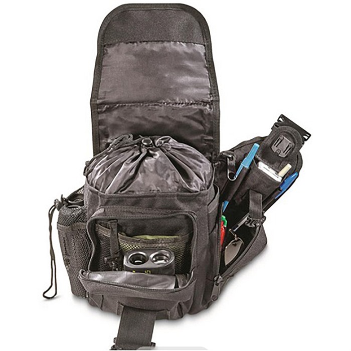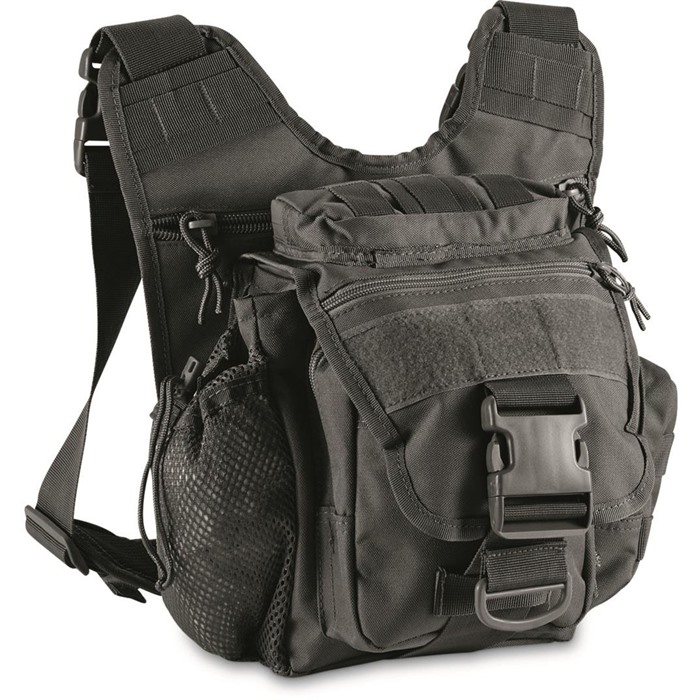 CACTUS JACK GEN II SIDEWINDER SLING BAG The Cactus Jack Sidewinder Sling bag makes a great easy carry-all bag that doubles as a conceal and carry bag. FEATURES: Hook-and-loop CCW access pocket Padded mesh-lined shoulder strap and back Oversized quick-release buckle 4 exterior zip pockets 2 pen slots Drawstring skirt for expandable storage Mesh water bottle or mag holder SPECIFICATIONS: 2" nylon / mesh padded shoulder strap Oversized quick-release buckle Breathable mesh padded back pads 4 exterior zipped pockets 7-1/2" x 4" x 9" main compartment 4.4 liters (270cu in) capacity Drawstring skirt for over-stuffing Mesh water bottle / mag holder MOLLE attachments for adding accessories Built in holster and mag holder in discreet pocket for concealed carry.