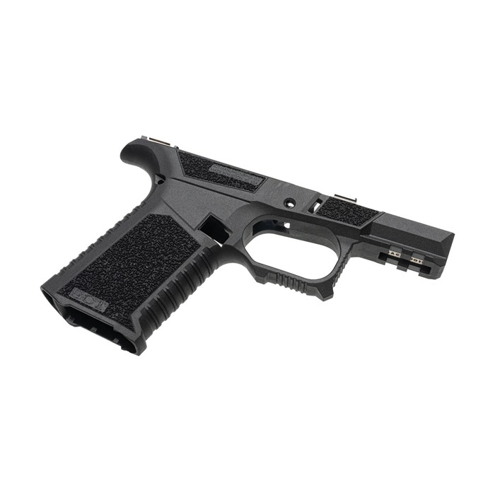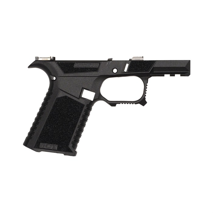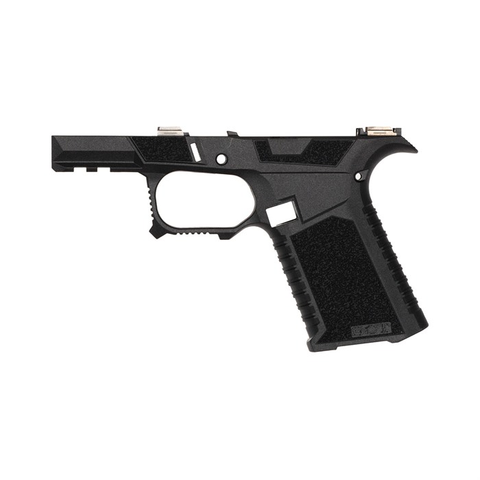 The SCT Manufacturing Glock® Compatible Sub Compact stripped frame is going to change the way you build pistols. It is the only frame at this price point packed with this level of features. This is a serialized frame with shooter-oriented ergonomics. Polished stainless steel over molded rails provide the optimal platform that is ready to build. They are made with an industry leading proprietary polymer blend and compatible with Glock® 43X and 48 components. FEATURES Serrations and index point on trigger guard to help control recoil Serrations on top of beaver tail reduce glare Flared mag well Thumb Accelerator pad Advanced contour grip with aggressive texturing Modified Factory Picatinny with addition al mounting slot. Extended beaver tail with low profile bore axis Grip angle is the same as Glock® Slide stop guard Larger trigger guard for better access with gloves Recessed contoured mag release area for faster mag changes Compatible with compact 9mm Luger. Frame stripped assembly includes: SCT SC polymer frame, electroless nickel locking block. Disclaimer: SCT Manufacturing recommends the installation of mating components be performed by a certified gunsmith to ensure proper function and safety. Due to variations in third party parts and accessories, SCT Manufacturing will not be held liable for any damage caused to you and/or your firearm as a result of aftermarket accessory