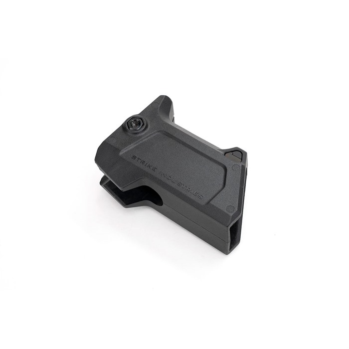 Varustettuna lukitusmekanismilla saumattomia arkivaihtoja varten, pidike on tukevasti kiinnitetty Picatinny-rautaan 5° eteenpäin suuntautuvassa kulmassa. SI Modular Magazine Release (MMR) on esiasennettu mukavuutesi vuoksi, ja mukana on pidempi nappi niille, jotka suosivat erikokoista vaihtoehtoa. Strike Industriesin Spare Magazine Holder on valmistettu korkealaatuisesta, kevyestä polymerista, mikä takaa sen kestävyyden.