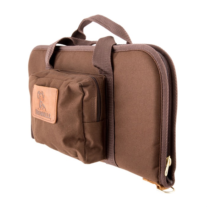 SPECS: Brown Cordura nylon shell, black Tricot interior. Standard - 12" (30.5cm) long, 8" (20.3cm) high, approximately 1½" (3.8cm) thick when zipped. Magnum - 18" (45.7cm) long, 9" (22.8cm) high, approximately 1½" thick when zipped. Deluxe Magnum - Storage pocket, 8" (20cm) long, 6" (15cm) high, approximately 1¾" (4.4cm).