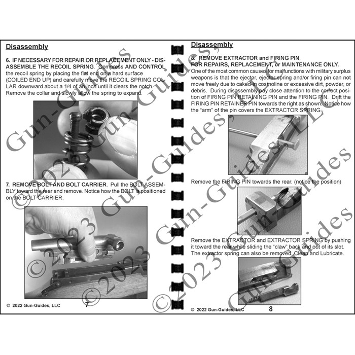 Handy soft-cover guides contain newly written, detailed field stripping, disassembly, and reassembly procedures for popular firearms. Features easy-to-read parts schematics and concise, step-by-step disassembly instructions illustrated with large photographs. Includes special re-assembly “tricks-of-the-trade” that help make sure the gun functions properly when you’re done. Short, historical background on the design and development of each firearm adds to your understanding. Spiral bound to lay flat and stay open on the bench. 16 pages. 5½" x 8½". 33 photographs. Illustrated parts schematic. Covers Russian, Chinese, Yugoslavian, Romanian, Albanian, and many other variants and manufacturers.