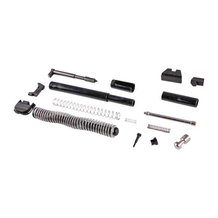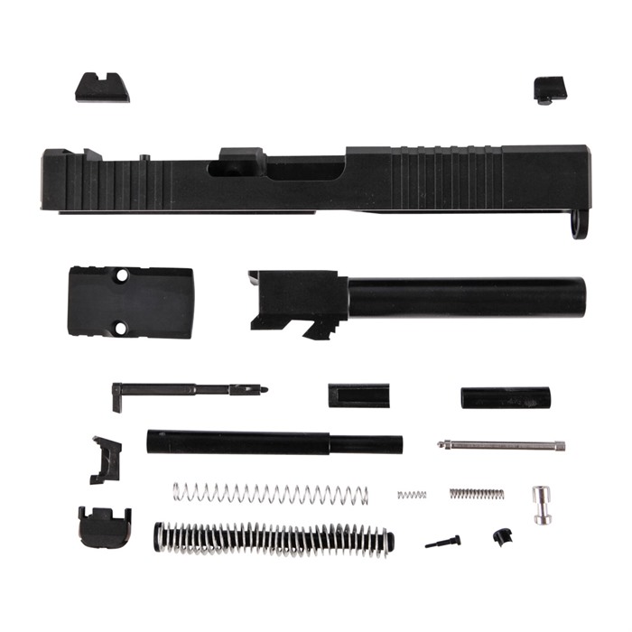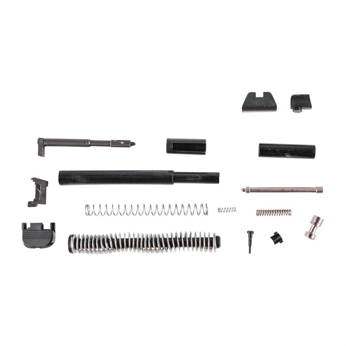 The perfect set to build your own Glock 17~. Choose from the Brownells threaded on non-threaded barrels as well as a standard slide or a windowed slide. All sets come with an RMR Cut Slide, Barrel, RMR Plate, Sights, and a Parts Kit to finish out the slide for your build! The limited production Brownells Brown RMR Slide for Glock® 17 Gen3 pistols features a pre-cut slot for easy, secure, low-profile mounting of a Trijicon RMR or Holosun red dot sight. Up front, there are distinctive, cocking serrations that aid in manipulating the slide to check the chamber or clear a jam. And we’ll admit it: the serrations just look cool, too. All RMR Slides also have standard Glock® factory front and rear sight dovetails for "iron" sights. To get proper co-witnessing with the RMR, you will need to also install suppressor-height iron sights. These limited production Brownells Brown slides for the Glock® 17 Gen3 come with a "window" cutout on top between the front serrations that enhances airflow to keep the barrel cooler - ideal for hard-working action competition pistols. Plus, if you have an upgraded barrel with a contrasting finish or a unique exterior pattern (fluting, spirals, "flames," etc.) the window lets you show it off a bit! A Brownells RMR Slide is the ideal upgrade for your factory Glock® 17 Gen3 OR the perfect "top half" for a brand-new custom gun built on a Polymer80 80% frame. Fits Gen3 Glock® 17 pistols & clones Built-in Trijicon RMR mounting slot Also accepts Holosun HE508T, HS507C & HS407C red dot sights Factory front/rear iron sight cuts, too Machined from corrosion-resistant 17-4 stainless steel billet Each RMR Slide for Glock® starts life as a billet of 17-4 stainless steel that is machined to Glock® factory specifications inside, so it’ll accept factory or aftermarket barrels and internal parts. Each slide is heat-treated to Rc 41-44 on the Rockwell C scale for added surface hardness and wear resistance. The Brownells Brown slide is a limited production and once they are gone, they’re gone. Brownells Gun Tech™ Note: Channel liner required for these slides. Channel liner is a press fit and requires a tool to install. We recommend #777-100-017. Includes patented optic cut technology pioneered by ZEV Technologies. Patent No. RE47335 Our Match-Grade Barrel for the Glock® 17 fits ALL generations of G17, Gen1 through Gen5. It's an excellent replacement for a shot-out factory barrel or for completing a pistol based on the G17 platform. And it's the ideal tube for a custom gun built on a Polymer80 frame with a Brownells RMR Slide on top! Each Brownells Match-Grade Barrel for Glock® 17 is machined from hardened 416R stainless steel to precise dimensions, so it's a drop-in fit on most guns. The tight lockup helps ensure superb accuracy, too. The extra-hard Black Nitride finish resists surface wear and stops in its tracks whatever corrosion might try to challenge the stainless steel. This 9mm Luger (9x17mm) chambered barrel is button-rifled with standard, 1-10" right-hand, 6-groove rifling that is compatible with "practice" ammo with non-jacketed bullets. Fits Glock® 17 Gen1 thru Gen5 Button-rifled 1-10" twist 416R stainless steel Non-reflective Black Nitride anti-corrosion finish Threaded model available with 1/2"-28 tpi threads Our match barrel for Glock® 17 is available with either a Plain muzzle with an 11-degree target crown or Threaded (1/2"-28 tpi) to enable installation of a compensator or sound suppressor. Both are laser-engraved with the chambering and the Glock model it fits.