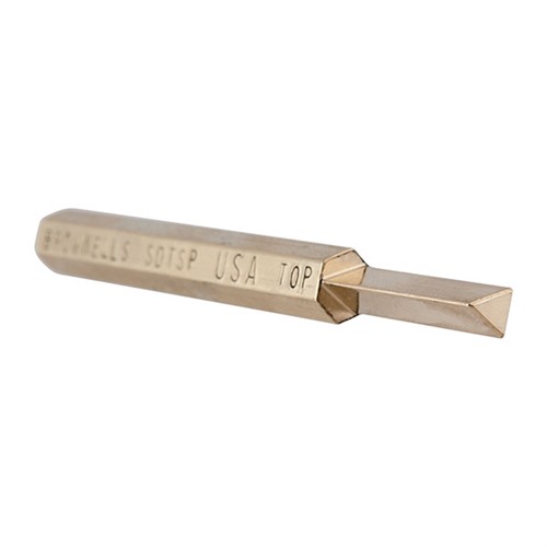 The Brownells Small Dovetail Sight Punch is designed to help with the installation, removal, and adjustment of front and rear small handgun sights. Unique triangular punch faces and heavy duty bodies create a great working tool for gunsmiths. The Small Dovetail Sight Punch has a base width of approximately 0.230".