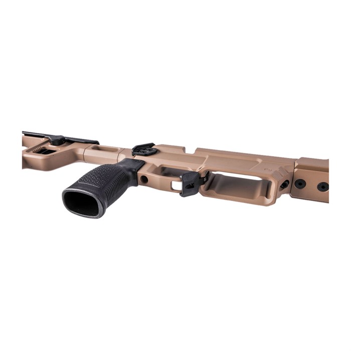 AERO PRECISION SOLUS COMPETITION CHASSIS The Solus Competition Chassis was designed to create the most precise and repeatable rifle to body connection. Modularity is another critical component of the Solus chassis a high focus on general ergonomics and adjustability ensures chassis fitment goes smoothly. Integrating industry-standard attachments like M-LOK and Arca Swiss allows a true custom experience no matter the intended use. Chassis Center Section Features: Remington 700 short action footprint V-Block bedding surfaces to ensure consistent lockup among different manufacture actions. Compatibility with AICS and AIAIW detachable box magazines Ambidextrous magazine catch Adjustable magazine catch (to accommodate for variances in magazine tolerances) Adjustable thumb rest Compatible with tangless AR15 pistol grips. Machined from custom 7075-T6 aluminum forgings Forend Features: Arca and M-LOK compatible forend with M-LOK slots at the 3,6 and 9 o'clock positions 6 QD sling sockets Compatible with Aero Precision's optional night vision bridge and bipod spigot Can accommodate up to 1.25" barrel diameters Stock Features: 7-position adjustable length of pull Variable position adjustable cheek comb Adjustable cant recoil pad 5 QD sling sockets Included bag rider