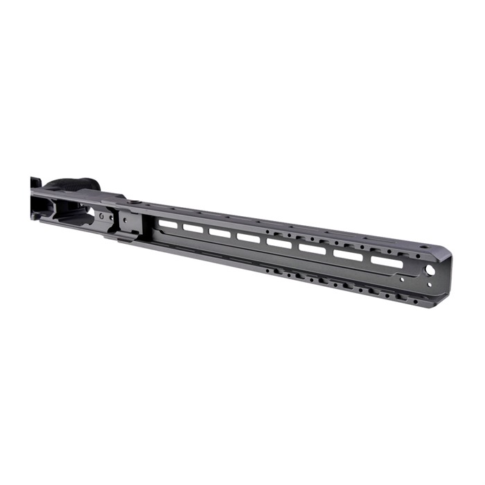 - Arca- ja M-LOK-yhteensopiva etupää, jossa M-LOK-aukot 3, 6 ja 9 kellon kohdalla