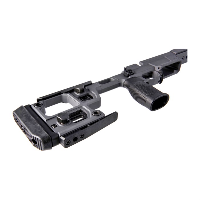 AERO PRECISION SOLUS COMPETITION CHASSIS The Solus Competition Chassis was designed to create the most precise and repeatable rifle to body connection. Modularity is another critical component of the Solus chassis a high focus on general ergonomics and adjustability ensures chassis fitment goes smoothly. Integrating industry-standard attachments like M-LOK and Arca Swiss allows a true custom experience no matter the intended use. Chassis Center Section Features: Remington 700 short action footprint V-Block bedding surfaces to ensure consistent lockup among different manufacture actions. Compatibility with AICS and AIAIW detachable box magazines Ambidextrous magazine catch Adjustable magazine catch (to accommodate for variances in magazine tolerances) Adjustable thumb rest Compatible with tangless AR15 pistol grips. Machined from custom 7075-T6 aluminum forgings Forend Features: Arca and M-LOK compatible forend with M-LOK slots at the 3,6 and 9 o'clock positions 6 QD sling sockets Compatible with Aero Precision's optional night vision bridge and bipod spigot Can accommodate up to 1.25" barrel diameters Stock Features: 7-position adjustable length of pull Variable position adjustable cheek comb Adjustable cant recoil pad 5 QD sling sockets Included bag rider