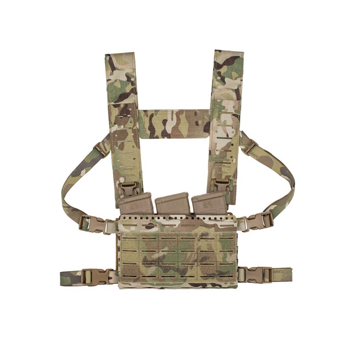 FAT STRAP MK4 on universaali H-harness-ratkaisu, joka on suunniteltu toimimaan Micro Fight Chassis'n, 34 A Split Chest Rigin ja Thing 2 -laajennuskehikon kanssa. Tämä vähäprofiilinen muotoilu sisältää nyt päivitetyn Squadron-päällyspaneelin, jossa on enemmän vaaka-asennuspisteitä PTT:lle ja muille varusteille, sekä joustohihna-aukkoja muiden varusteiden kiinnittämiseksi.