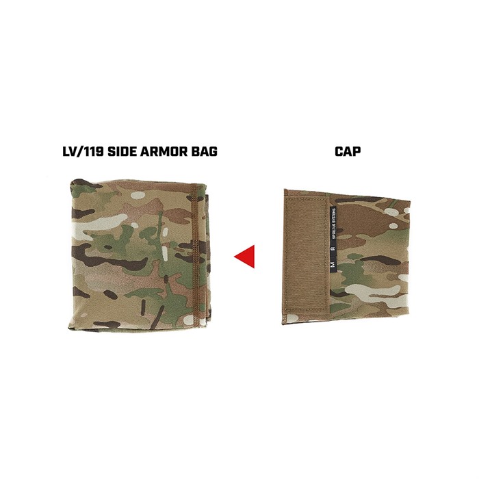 Spiritus Systemsin Side Armor Bag Caps tarjoavat uuden tavan kantaa sivusuojia. Käyttäjän ei enää tarvitse käyttää erillisiä laukkuja, jotka on kiinnitetty cummerbundiin kovien levyjen ja pehmeän suojan samanaikaiseen kuljettamiseen.