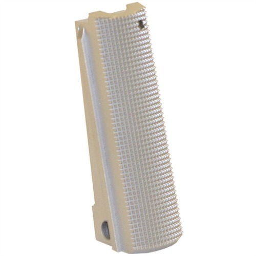 FLAT 1911 MAINSPRING HOUSING Classic and contemporary looking mainspring housings combine form and function, so there is no compromise in grip control even though they look great. Flat shaped housings are available with popular 25 lpi checkering preferred by many shooters, as well the latest Snakeskin, Chainlink, and Chainlink II patterns that provide a secure gripping surface without the “sharpness” of machine cut checkering. Because they won’t abrade your hand or clothing, they make the perfect addition to competition, carry, and tactical guns. Some Chainlink models are also available with an integral lanyard loop for attaching a weapon retention device. Blank models are completely smooth to allow custom checkering or engraving and are available in flat shapes. Also available for the Officer’s model in both blued and stainless steel with 25 lpi checkering. Specifications: Steel, blued or stainless steel (SS) natural finish. The Government Model housing features drop-in installation in all full-size 1911 pistols including full size Para-Ordnance pistols such as the P-14 and P-16. All housings will work great with any finish or type of steel, including aluminum.