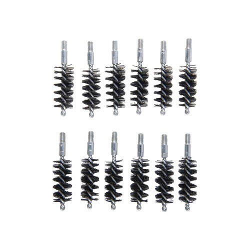 Since darn near as many bore brushes get used in the shop as get sold, we’ve packed these custom-made, top quality brushes in bulk paks to make them more convenient and less expensive. The shank is one-piece, looped and wound (not two, twisted together and chopped off). Nylon Bore Brush - New generation bore cleaners attack copper and bronze-based bullet jacket fouling aggressively and are just as hard on bronze cleaning brushes. Our nylon brushes stand up to these super cleaners and won’t cause accuracy-ruining scratches. One-piece, looped and wound steel shanks (except Black Powder (BP) series, .17 caliber, and .20 caliber, which have brass shanks). SPECS: Bristles: Available in nylon. Shank: Steel, looped and wound. Overall Length: 2-1/8 (5.4cm) Thread: 17 caliber 5-40 thread, all others 8-32 thread