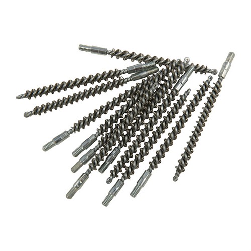 Since darn near as many bore brushes get used in the shop as get sold, we’ve packed these custom-made, top quality brushes in bulk paks to make them more convenient and less expensive. The shank is one-piece, looped and wound (not two, twisted together and chopped off). Stainless Steel Bore Brush - For severely leaded, fouled or rusted bores, the aggressive cleaning action of a stainless steel brush can help get them clean. However, the aggressive action accelerates wear, and regular use can shorten barrel life. SPECS: Bristles: Available in stainless steel. Shank: Steel, looped and wound. Overall length: 3.27" (8.3cm) Threads: .17 and.20 cal. 5-40 threads, all others 8-32 thread.