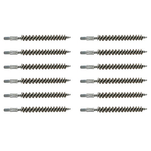 Since darn near as many bore brushes get used in the shop as get sold, we’ve packed these custom-made, top quality brushes in bulk paks to make them more convenient and less expensive. The shank is one-piece, looped and wound (not two, twisted together and chopped off). Stainless Steel Bore Brush - For severely leaded, fouled or rusted bores, the aggressive cleaning action of a stainless steel brush can help get them clean. However, the aggressive action accelerates wear, and regular use can shorten barrel life. SPECS: Bristles: Available in stainless steel. Shank: Steel, looped and wound. Overall length: 3.27" (8.3cm) Threads: .17 and.20 cal. 5-40 threads, all others 8-32 thread.