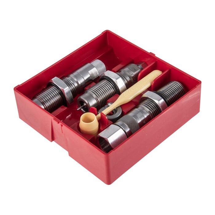 734307905637 Lee Steel 3-Die Rifle Set sisältää täyspitkän koon säädön, luodin istutusvälineen ja jauheen läpi laajentavan välineen, universaalin hylsynpidikkeen, jauheannostelijan sekä ohjeet/kuormitustiedot. Nämä välineet ovat teräksisiä, eivät karbidisia, joten hylsyjen voitelu on tarpeen.Toimitusaika noin 2-4 viikkoa.