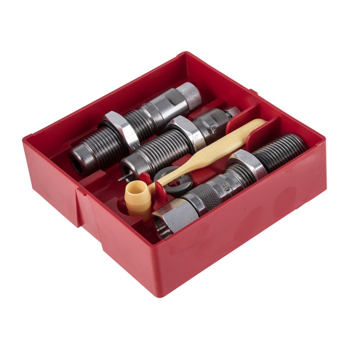 734307907624 Lee Steel 3-Die Rifle Set sisältää täyspitkän koon säädön, luodin istutusvälineen ja jauheen läpi laajentavan välineen, universaalin hylsynpidikkeen, jauheannostelijan sekä ohjeet/kuormitustiedot. Nämä välineet ovat teräksisiä, eivät karbidisia, joten hylsyjen voitelu on tarpeen.Toimitusaika noin 2-4 viikkoa.