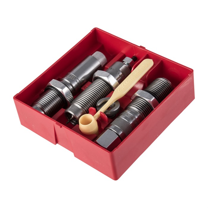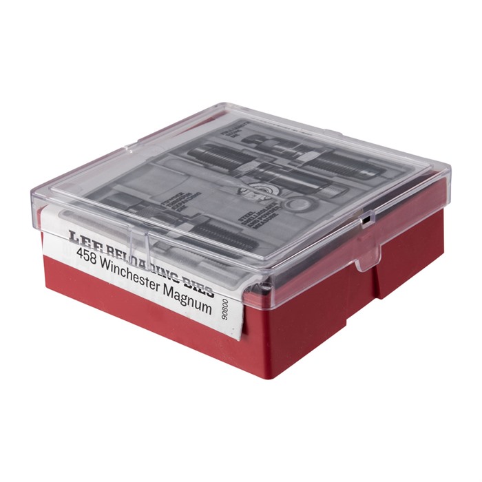 Lee Steel 3-Die Rifle Set sisältää kaikki tarvittavat osat, jotta voit ladata .458 Winchester Magnum -patruunoita tehokkaasti ja tarkasti.