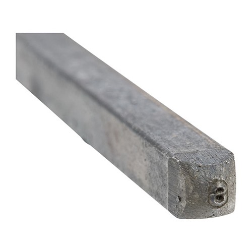 Teräksiset leimasimet saatavilla 1/16" (1.6mm) ja 3/32" (2.4mm) kokoina. Merkit on leikattu teräspalkin päähän, jonka koko on ¼" (6.4mm) neliö x 2-3/8" (6.0cm) pitkä.