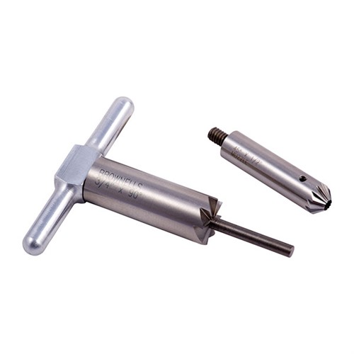 050806017382 Setti sisältää: yksi 90° tasoittimen leikkuri suun suoristamiseen lyhentämisen jälkeen tai vaurioiden korjaamiseen; yksi 45° viisteleikkuri, joka murtaa riflingin reunat puhtaan luodin poistumisen vuoksi tai viistelee revolverin sylinterin suun nopeita latauksia varten; lisäksi yksi kahva, joka sopii molempiin leikkureihin ja yksi teräsputkiopas. Vaihdettava opas pitää leikkurin oikeassa linjassa. Osta ylimääräisiä oppaita käytettäväksi yhdellä leikkurilla monilla eri kaliipereilla. Oppaita muille kaliipereille saatavilla erikseen.Jälkitilaus, toimitusaika n. 4-12 viikkoa USA:n varastosta.