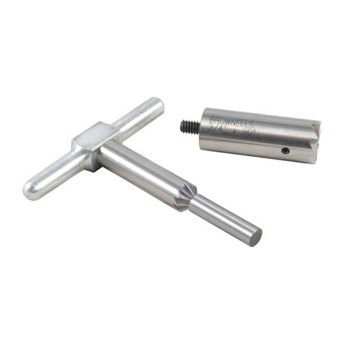 050806017481 Setti sisältää: yksi 90° tasoittimen leikkuri suun suoristamiseen lyhentämisen jälkeen tai vaurioiden korjaamiseen; yksi 45° viisteleikkuri, joka murtaa riflingin reunat puhtaan luodin poistumisen vuoksi tai viistelee revolverin sylinterin suun nopeita latauksia varten; lisäksi yksi kahva, joka sopii molempiin leikkureihin ja yksi teräsputkiopas. Vaihdettava opas pitää leikkurin oikeassa linjassa. Osta ylimääräisiä oppaita käytettäväksi yhdellä leikkurilla monilla eri kaliipereilla. Oppaita muille kaliipereille saatavilla erikseen.Jälkitilaus, toimitusaika n. 4-12 viikkoa USA:n varastosta.