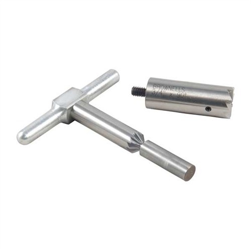050806017528 Setti sisältää: yksi 90° tasoittimen leikkuri suun suoristamiseen lyhentämisen jälkeen tai vaurioiden korjaamiseen; yksi 45° viisteleikkuri, joka murtaa riflingin reunat puhtaan luodin poistumisen vuoksi tai viistelee revolverin sylinterin suun nopeita latauksia varten; lisäksi yksi kahva, joka sopii molempiin leikkureihin ja yksi teräsputkiopas. Vaihdettava opas pitää leikkurin oikeassa linjassa. Osta ylimääräisiä oppaita käytettäväksi yhdellä leikkurilla monilla eri kaliipereilla. Oppaita muille kaliipereille saatavilla erikseen.Jälkitilaus, toimitusaika n. 4-12 viikkoa USA:n varastosta.