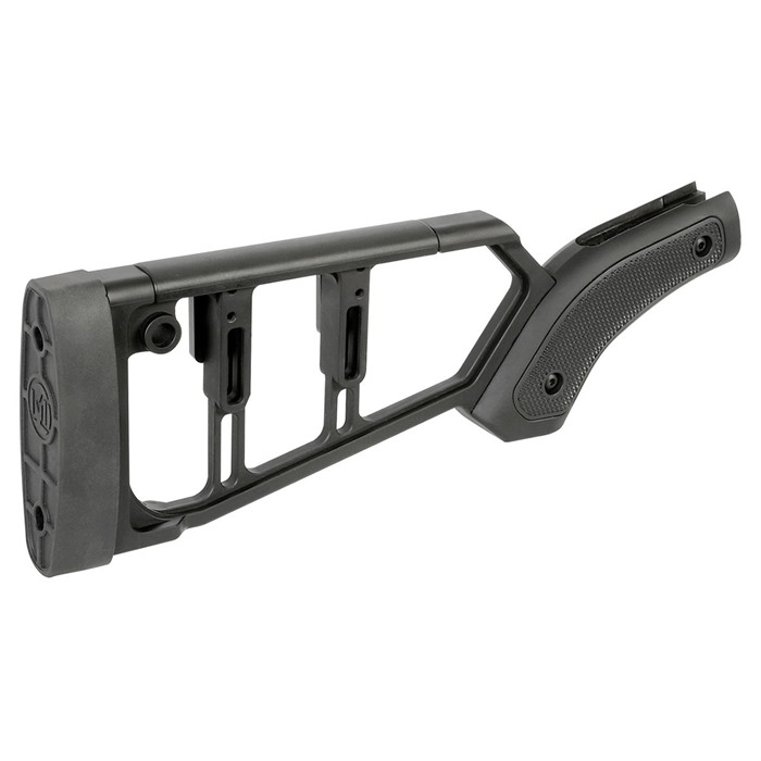 Compatible with Smith & Wesson 1854 rifles Polymer cheek piece provides adjustability for use with iron sights, red dots, or magnified optics Cheek piece in the lowest position maintains the same height as the factory stock Maintains factory length of pull. Spacer plates are an available add-on if a longer length is needed. Ambidextrous design works for left and right-handed shooters Exclusive Midwest Industries butt pad reduces felt recoil while maintaining a secure fit in your shoulder Features several properly placed anti-rotation QD swivel sockets. Also incorporates one standard sling swivel location and stud for versatile sling placement. MI-designed grip panels give a unique look while providing ample texture in a rainy or snowy environment M-LOK™ compatible slots on either side for use with MI Universal Shell Holders or M-LOK™ panels for aesthetics Provides factory length of pull to fit most users Does not add weight over factory wood stock Grip and stock beam made from Hard Coat Anodized 6061 Aluminum Weight of Complete Unit: 1lb 8oz. Made in the USA Lifetime warranty