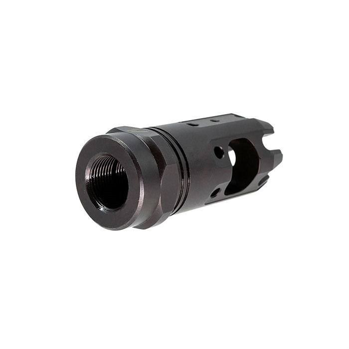 Suuri yksittäinen baffle vangitsee ventiloidut kaasut, tuottaen nettopaineen eteenpäin ampujasta, mikä auttaa vähentämään rekyyliä. Portit toimivat tukemaan suutinosaa nopeammissa peräkkäisissä laukauksissa samalla, kun ne vaimentavat ampujan tuntemaa rekyyliä, säilyttäen miellyttävän kokonaisampumiskokemuksen.