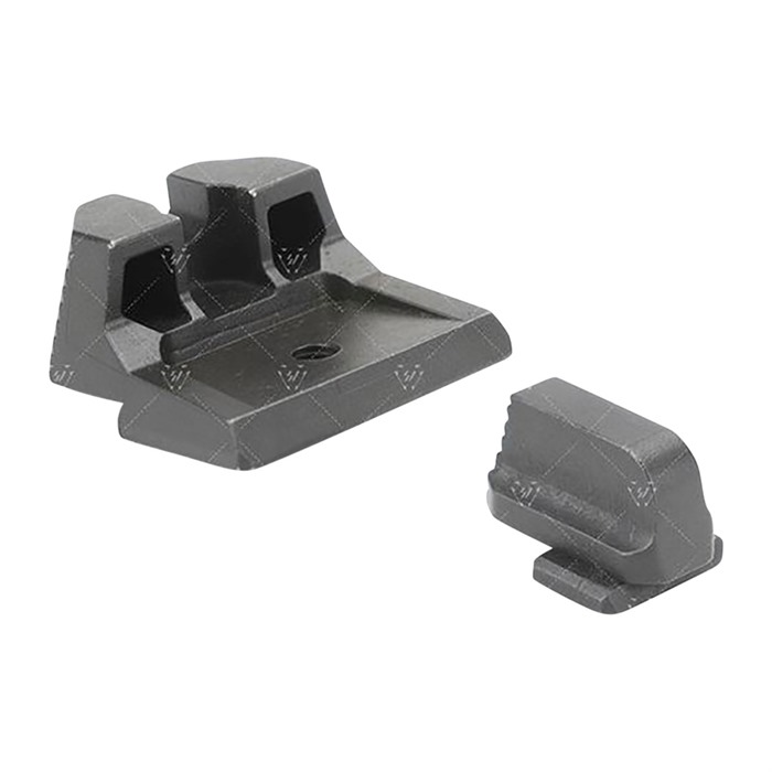 The Strike Iron Sights (Suppressor Height) give you an elevated sight picture for a red dot or suppressor pistol setup. The front and rear sights sit at an absolute co-witness position with a slide mounted red dot. Designed to help with proper sight alignment and keep the shooter's eyes focused, there is natural light that is seen on both sides of the front sight between the u-notch rear sight. Steps placed in the rear of both sights help angle and reduce unwanted glares or reflections out of your eyes. Lines and angles designed to use natural light reflections and shadow play to keep user's eye aligned and focused on the target. The rear sight is designed with a negative angle so that the shooter will see the back wall as dark as possible to give total focus on the sights. The line running down the middle of the rear sight is there to catch light from above and create a "line" illusion in which the shooter can use it to assist in aiming. The front sight can be painted to user’s color preference or use glow-in-the-dark paint to customize the look and use of the sights. Made from SUS630 hardened stainless steel, the Strike Iron Sights For (Suppressor Height) is engineered to be as robust as possible while giving you one of the most budget friendly options on the market.