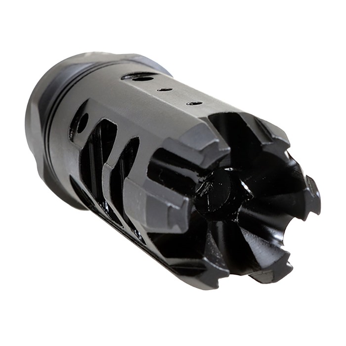 The Strike Industries Mini King Comp 9mm brings the proven performance of the full size King Comp in a more compact, lighter package designed exclusively for 9mm carbines. The Mini King Comp retains the full range of features of the King Comp in a single chamber format. The large single baffle captures the vented gasses for recoil mitigation. The redirection jets work to stabilize the muzzle end for faster follow up shots while dampening felt concussion on the shooter end to maintain the pleasant shooting characteristics of 9mm carbines. The end of the compensator features the “crown” of standoff/wire cutting tines that gives the compensator its name. While 9mm carbines are known for low recoil and fast handling characteristics, give yours an extra edge in performance with the SI Mini King Comp. Package includes: 1x Mini King Comp 9mm 1x Crush Washer Features Compact single chamber design Standoff/wirecutting tines Tuned for concussion reduction without sacrificing performance COMPATIBILITY: Thread Pitch: 1/2-28 SI OPPRESSOR -CALIFORNIA PROPOSITION 65 WARNING:- WARNING: This product contains chemicals known to the State of California to cause cancer and birth defects or other reproductive harm. For more information: www.P65Warnings.ca.govharm. For more information: www.P65Warnings.ca.gov