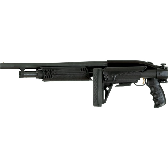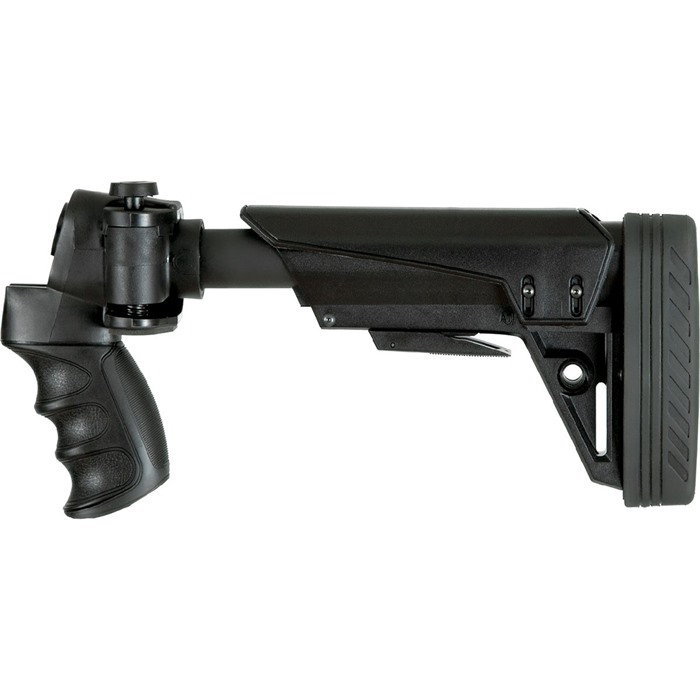 STRIKEFORCE GEN2 SHOTGUN STOCK W/TRACLOCK FITS: Maverick 88 12ga & 20ga (proud fit) Mossberg 500/535/590/835 12ga & 20ga (proud fit) Remington 870 12ga, and, Winchester 1200/1300 12ga & 20ga (proud fit) For the Winchester SXP you will need an additional adaptor FEATURES: Stock Side-Folds to the Left of the Receiver Can be Fired from Folded Position TactLite GEN2 Six-Position Adjustable Stock with TracLOCK System Eliminates Horizontal & Vertical Movement of the Stock on the Buffer Tube Provides Smooth Secure Stock Adjustments Eliminates the Need for Secondary Locking Mechanisms No Snag Points Dual Sided QD Attachment Point Removable/Adjustable Cheekrest System Elongated Design to Fit All Users Includes Short Cheekrest with 1/2” of Adjustment Extreme Temperature Glass Reinforced Polymer Buffer Tube X1 Recoil Reducing Pistol Grip Sure-Grip Texture Recoil Impact is Absorbed Not Affected by Chemicals or Extreme Temperatures X2 Recoil Reducing Butt-Pad Upgraded 1 1/4″ Thick Pad Recoil Impact is Absorbed Reduces Muzzle Lift Eliminates the Felt Punch of the Recoil Shoot Any Load Size with No Pain Transfer to the Shooter Not Affected by Chemicals or Extreme Temperatures Scratchproof & Weatherproof Made in the USA Easy Installation Adapters for All Supporting Models Included All Mounting Hardware Included