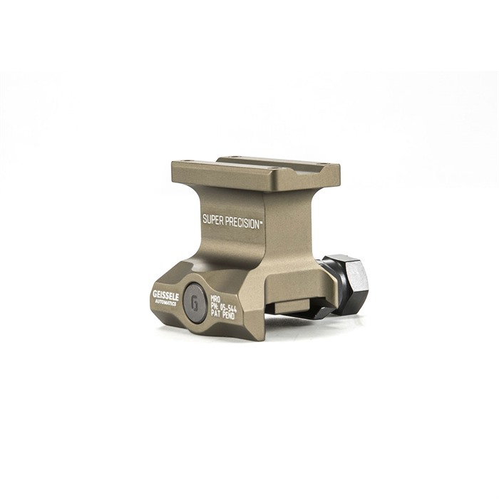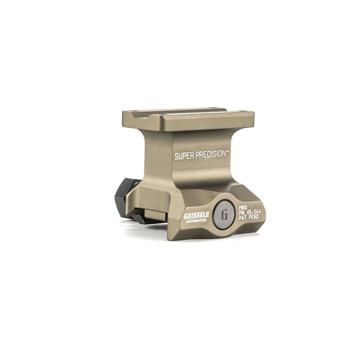 The Super Precision MRO Series was developed specifically to work with the Trijicon MRO and like mounted red dot optics. These mounts are precision machined from a single piece of 7075-T6 high strength aluminum and are available in both co-witness and lower third co-witness options. Utilizing Geissele’s update of the classic nut and bolt method, this mount will attach your red dot to your weapon with 1,400 pounds of clamping force, and features 3 shear lugs for maximum rigidity and return to zero.