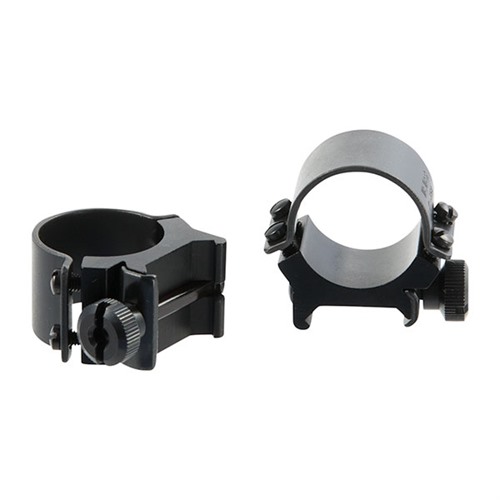 Steel caps with two screws per side provide extra strong, 4-screw, clamping power. Helps ensure that reticle stays square while tightening top screws. Large clamp nut locks rings to base, provides easy scope installation, removal; and accurate return to zero after re-installation.