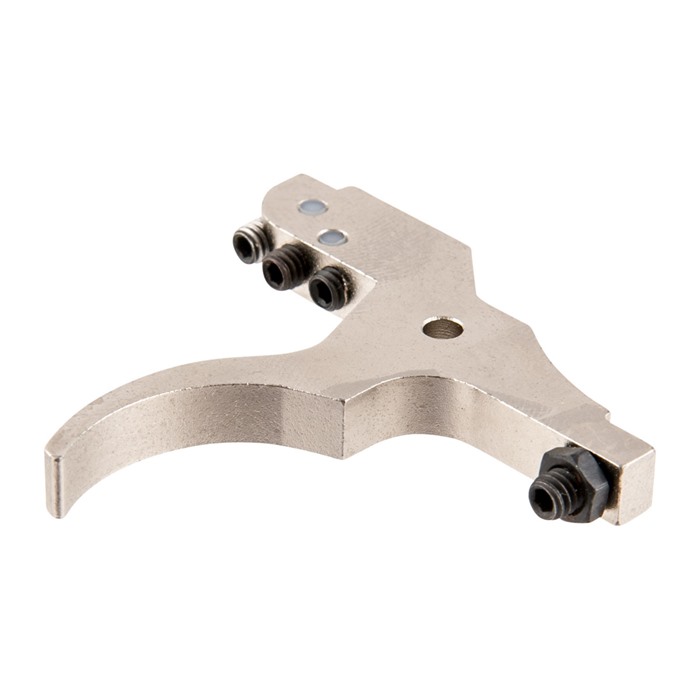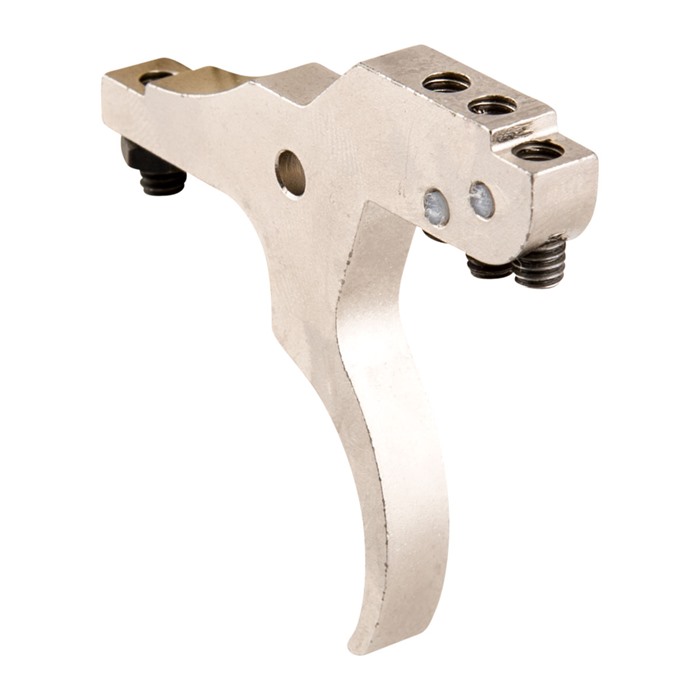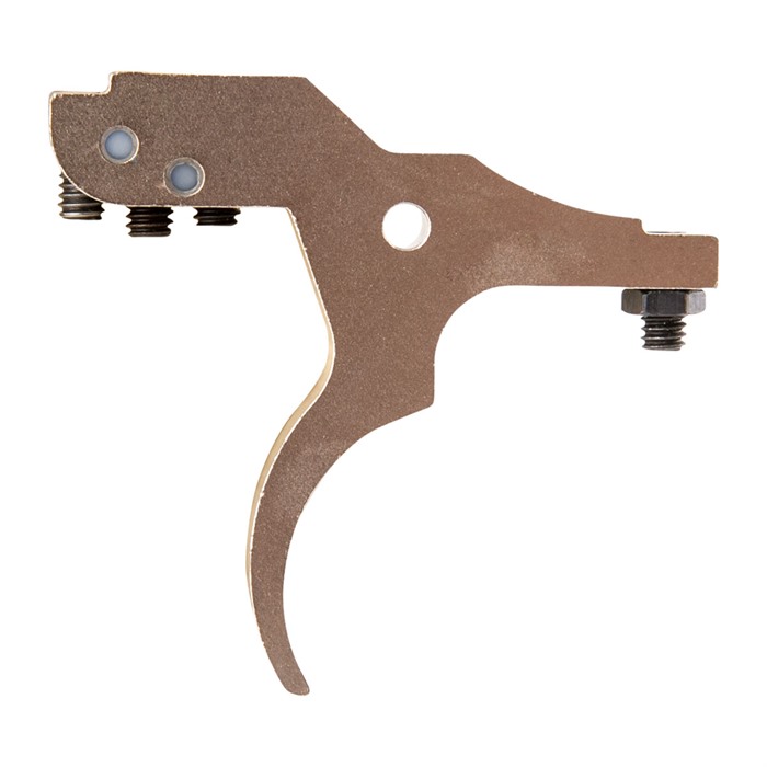 Hardened steel trigger replaces the factory unit and its accuracy-robbing heavy pull. Gives a clean, crisp breaking trigger pull. Factory-type set screws adjust for letoff, overtravel and weight of pull (2 to 4 lb.). Parts are fully-finished, requires gunsmith fitting, and modification to stock. Includes trigger and trigger springs. Sear not included.