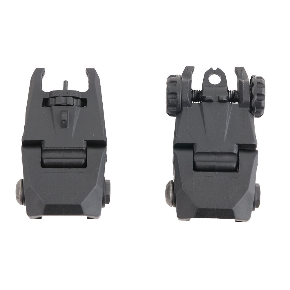 The set is lightweight and durable, and the flip-up design is enhanced with precision machined metal parts and heavy-duty springs. The set includes both front and rear sights.