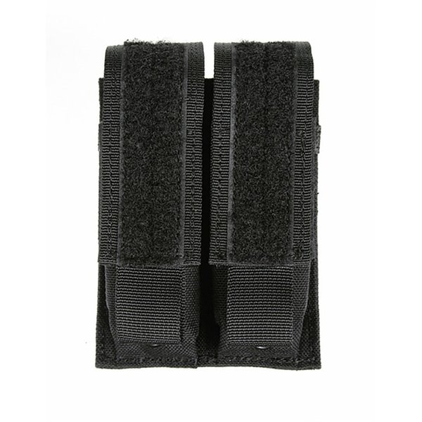 Blackhawk’s Double Pistol Mag Pouch lets you attach two spare magazines any place you want on your belt or tactical gear. Made of rugged 500 denier nylon, the Blackhawk Double Pistol Mag Pouch easily attaches to any S.T.R.I.K.E or PALS/MOLLE gear. Secure storage for two double-stack pistol magazines Hook-and-loop sealed top flap keeps mag in, keeps dirt out Grommets in the pouch bottom let water drain out quickly The Blackhawk Double Pistol Mag Pouch integrates with your pack, vest, or operator’s belt, so those reloads that just might save the day are ready if you need them.